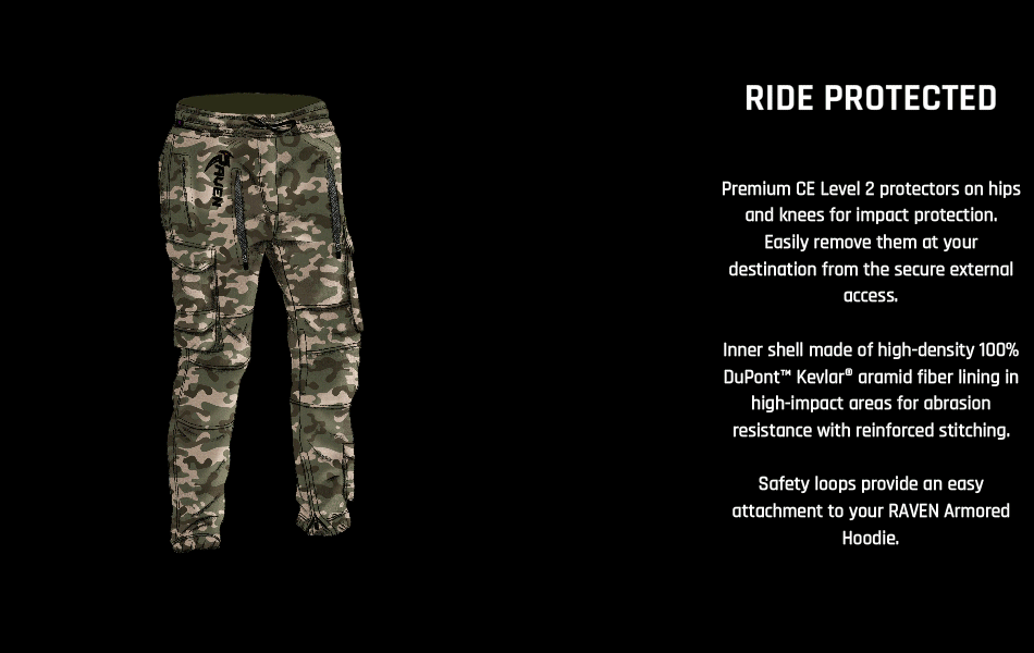- Belt loops to keep the joggers from sliding in the event of an accident. Providing an easy attachment to your RAVEN Armored Hoodie