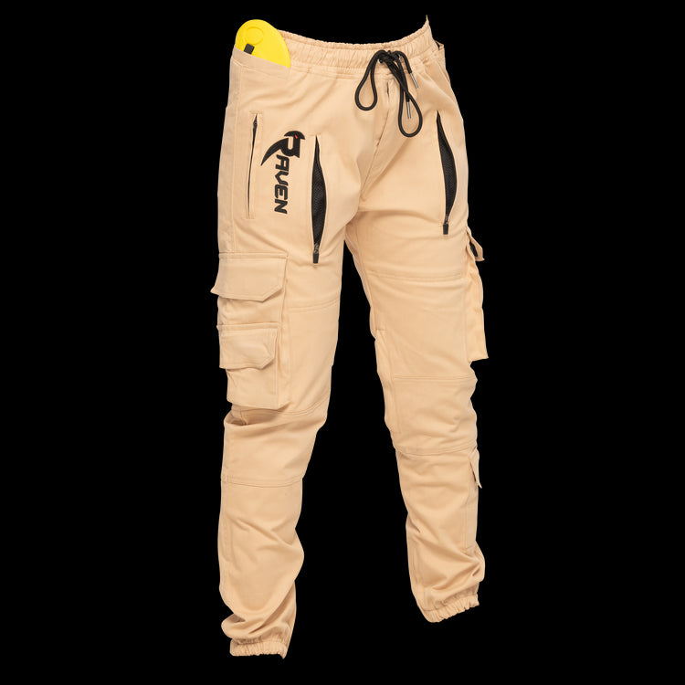 - Total of 6 cargo compartments with secure YKK®️ zipper closures - two upper pant pockets, three large side-stacked stash pockets, and a lower leg stealth pocket