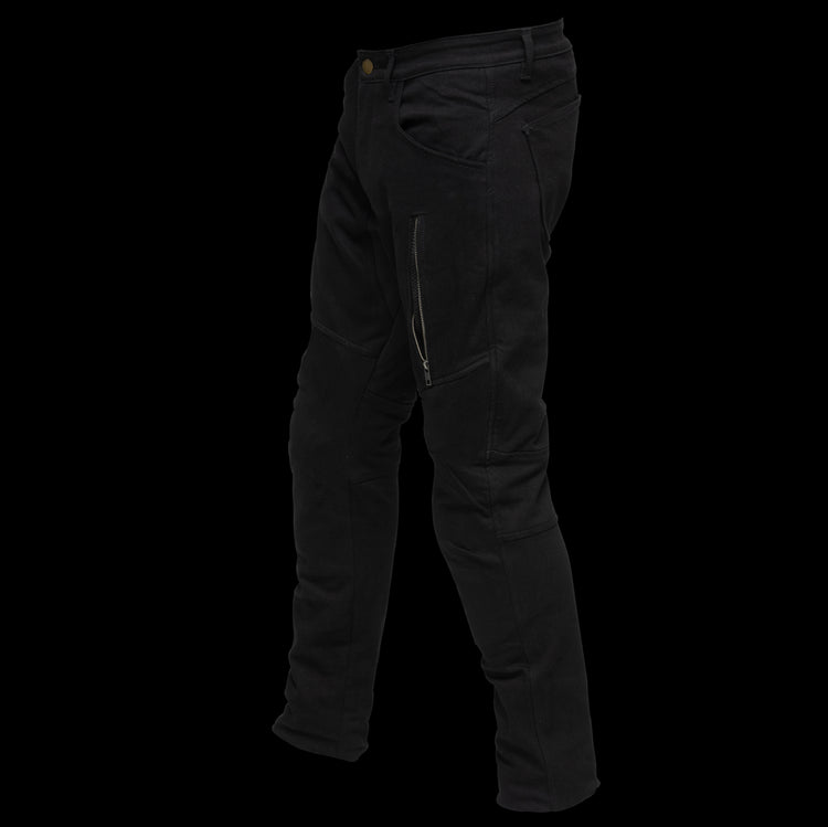 Take control of the ride with a fashion-forward pair of black jeans designed for everyday street riding. Available in Men's and High-Waisted Women's sizing, these jeans stay true to their protective characteristics. The inner shell is made of 100% DuPont™️ Kevlar®️, providing durability and abrasion resistance in high-impact areas. These comfortable jeans come armored with CE Level 2 protectors on the hips and knees, giving you extra confidence. Plus, the protective inserts are easily removable for washing.