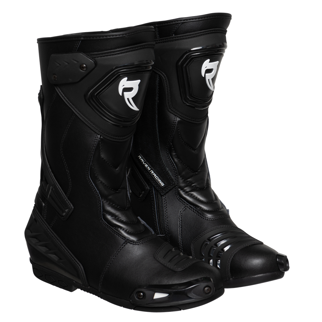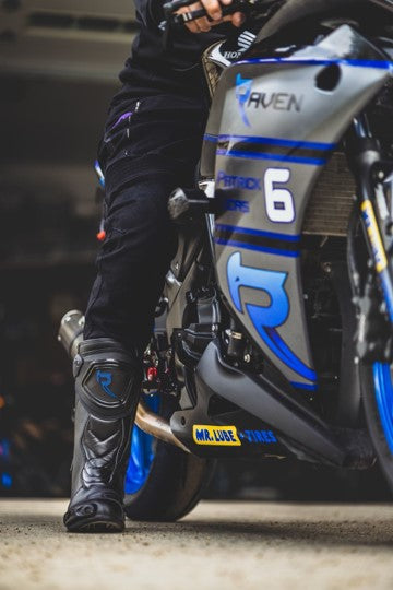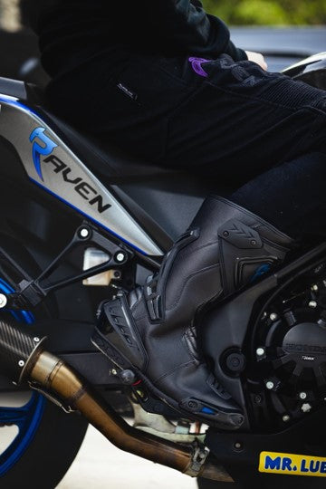 Take yourself to the next level. ELEVATE your riding skills by increasing your confidence with full protection RAVEN Racing (RR) boots - featuring TPU hard reinforcements, reinforced leather, and rear ventilation channels. These motorcycle boots have you covered on the track and beyond!